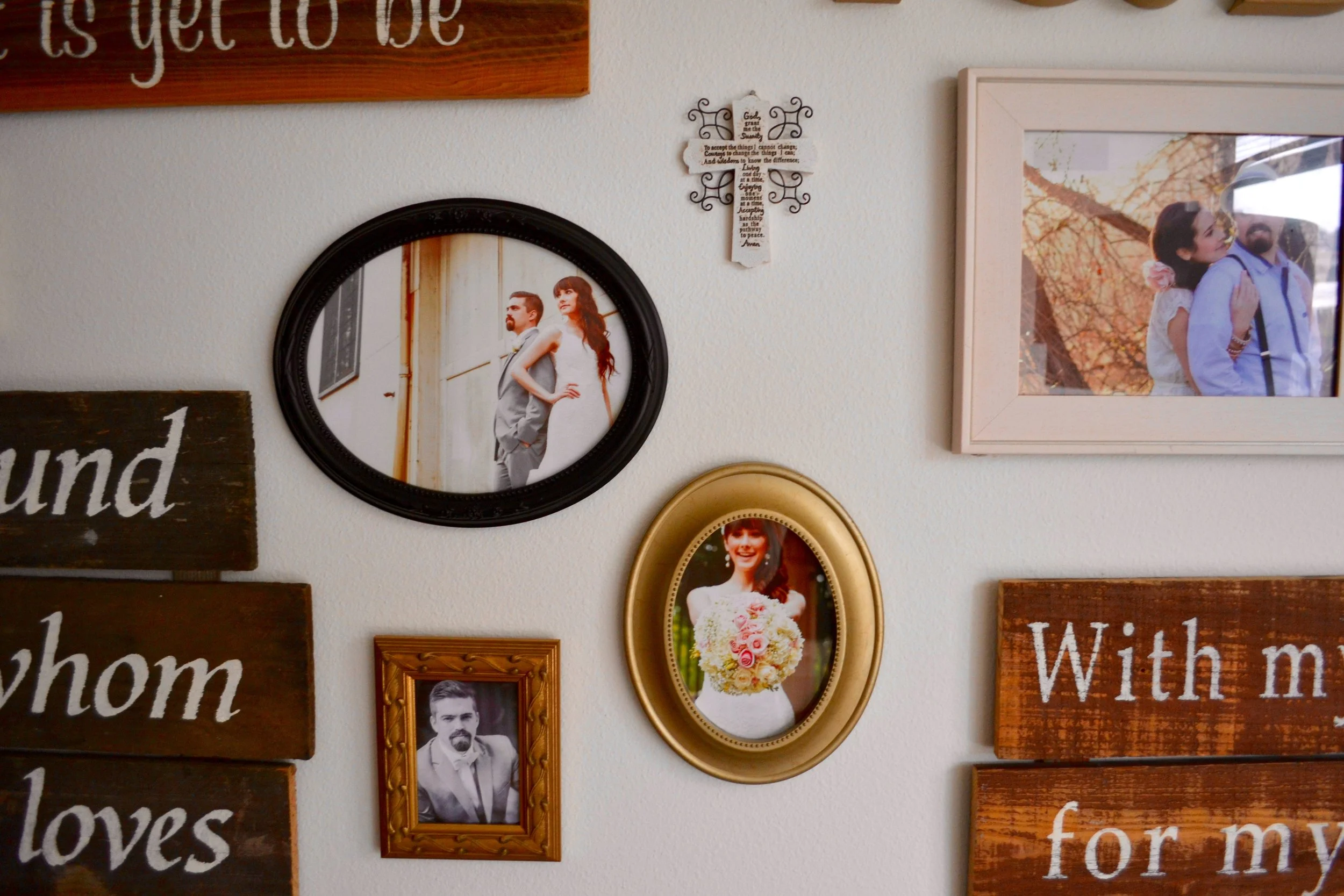 /The best way to make a place feel like home is to frame photos and hang pretty things. Or at least that’s what makes our rented space feel like home to me. In our last apartment, it took us a year and a half to get our gallery wall up and we only got as far as hanging the frames with no pictures in them! This time around it only took us about 5 months and we got the pictures in the frames before hanging them… what a concept! ;)